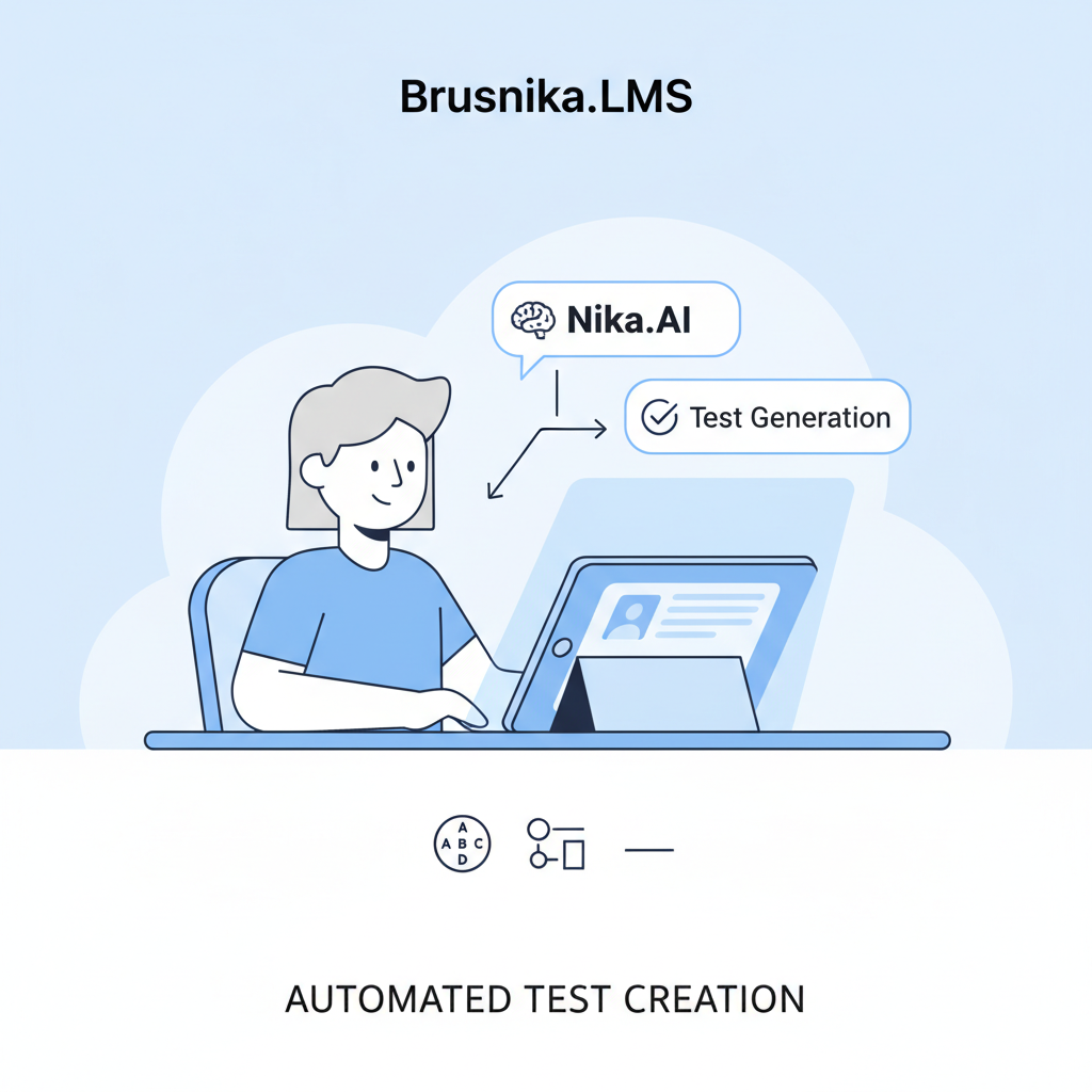 In this article you will learn how to use the new AI assistant Nika.AI, integrated into Brusnika.LMS, for automatically and rapidly creating tests ready for publication. Nika.AI generates various question types (multiple choice, matching, open-ended) based on your uploaded materials or a simple prompt.
